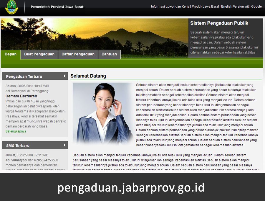Sistem Aplikasi ini dibuat berdasarkan base web pengaduan online Provinsi Jawa Barat