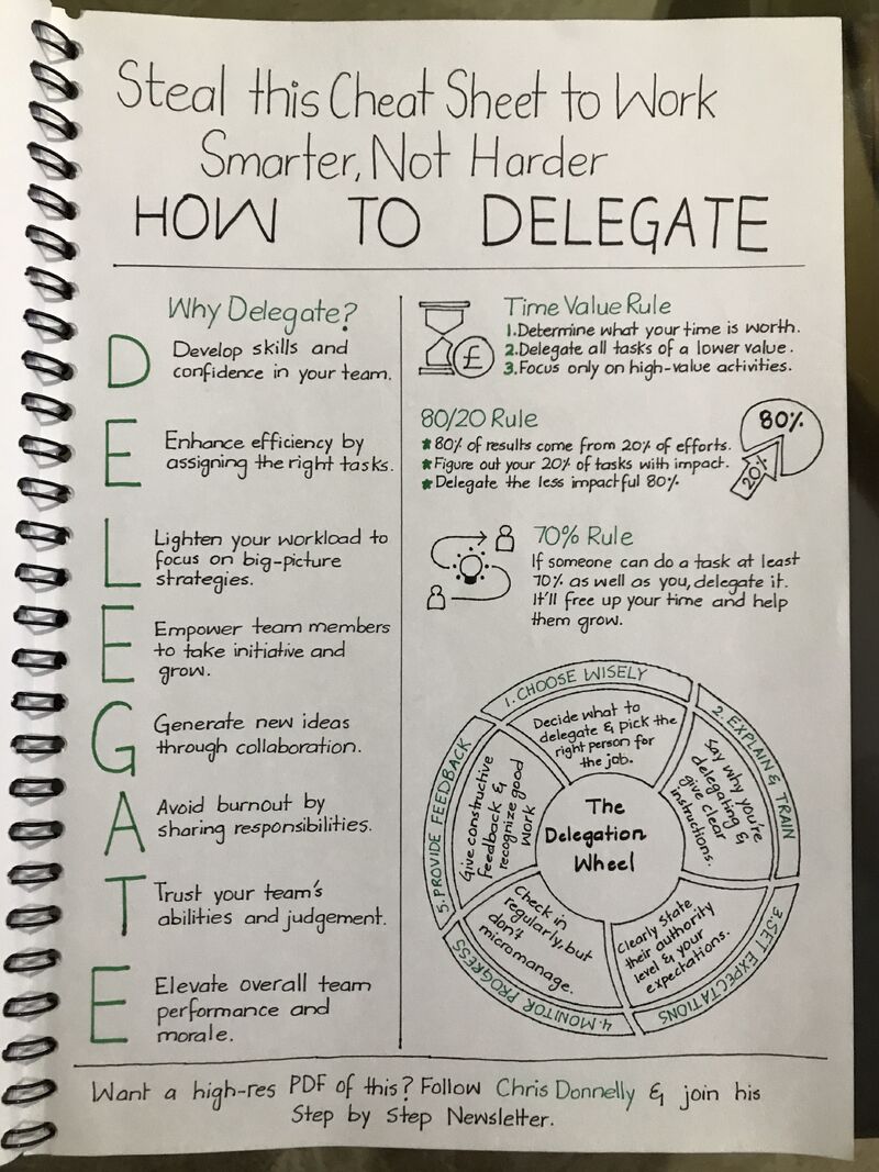 L,Lighten your workload to focus on big-picture strategies. Dengan mendelegasikan banyak hal kepada tim, kita bisa berfikir lebih strategis dan merencanakan hal-hal yang lebih besar lagi.