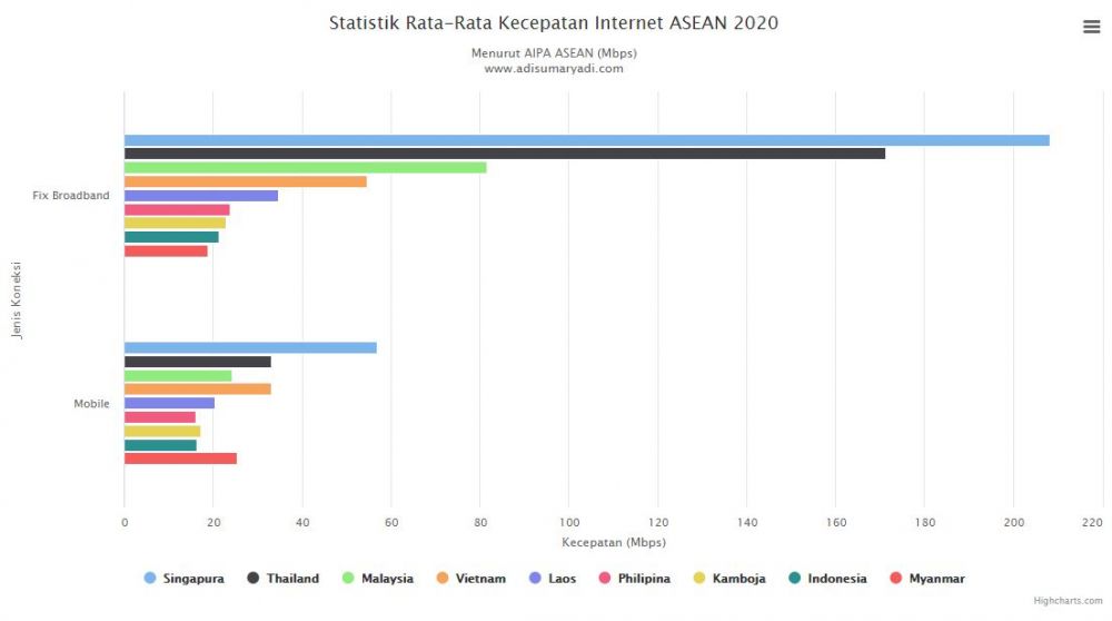Bagaimana rata-rata kecepatan internet antara tahun 2020 di regional ASEAN? seperti perkiraan kita sebelumnya bahwa Singapur menjadi negara dengan kecepatan Internet di ASEAN. Berikut ini adalah statistiknya menurut AIPA (Asean).