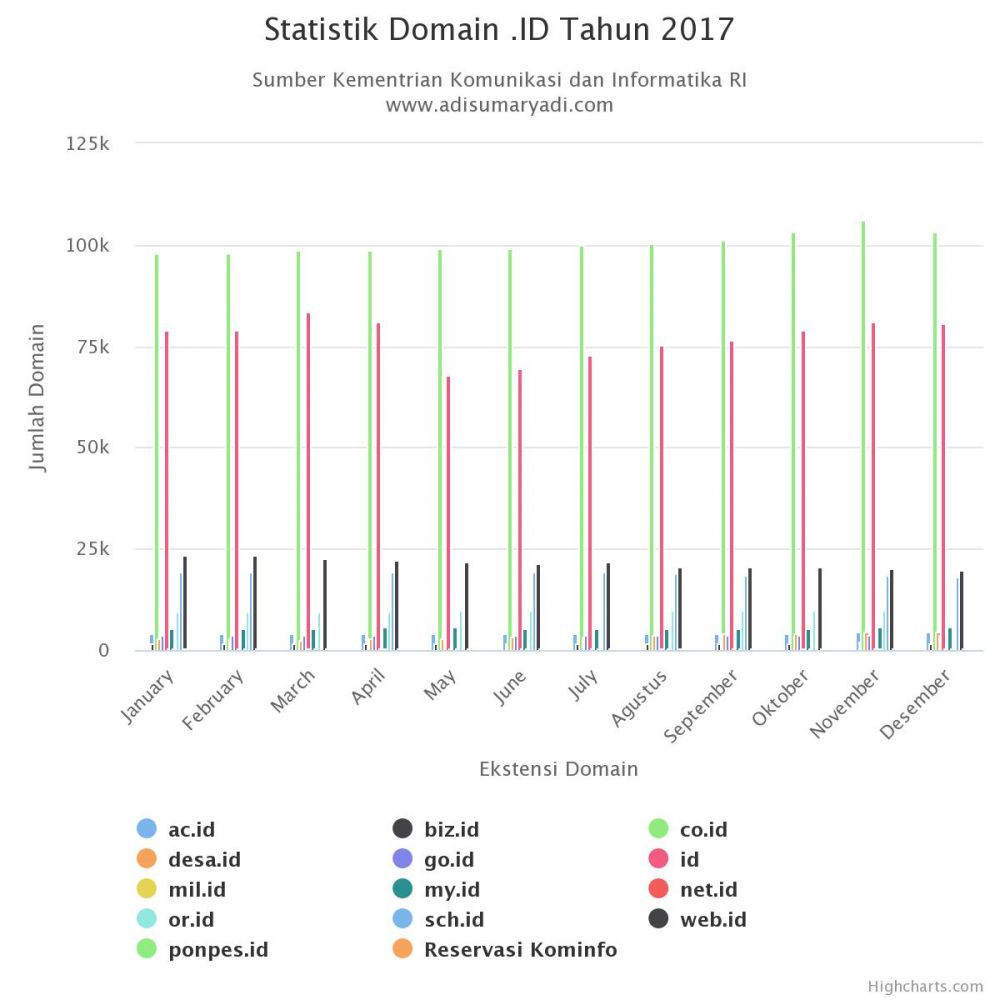 Pertumbuhan domain .id atau dot id terus bertambah setiap tahunnya, hal ini menunjukan awarness masyarakat internet Indonesia akan domain CTLD ID. Selain memang juga disebabkan karena domain TLD seperti .COM mulai habis. Data diatas menunjukan bagaimana pertumbuhan pengguna domain .id tahun 2017.