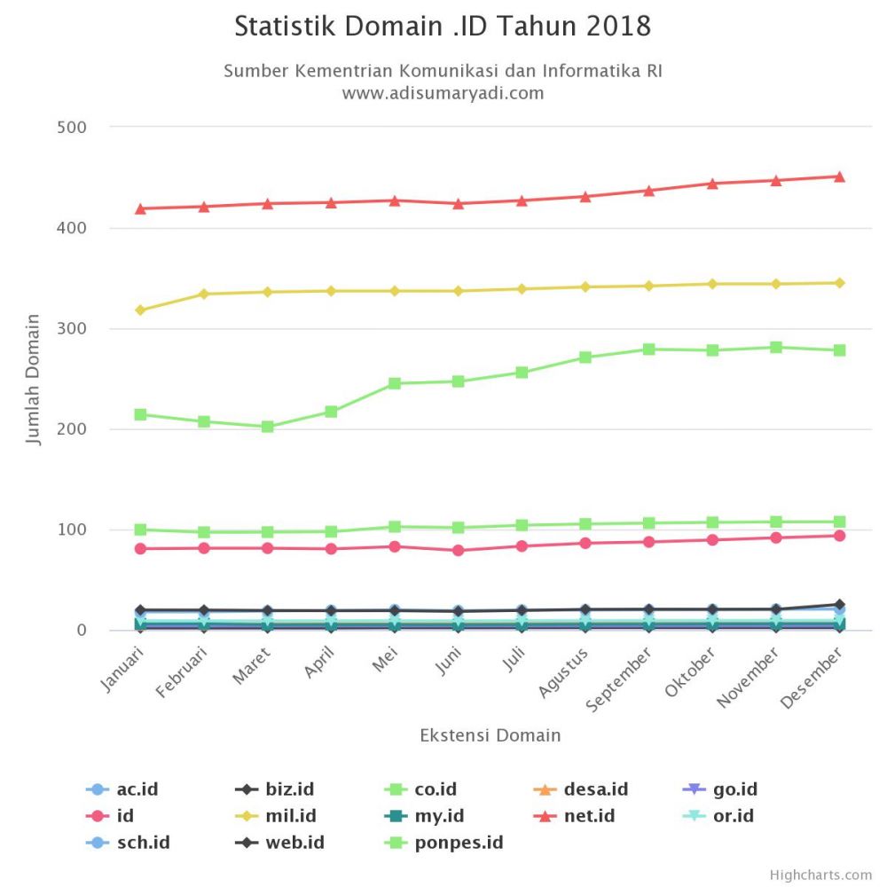 Pertumbuhan domain .id atau dot id terus bertambah setiap tahunnya, hal ini menunjukan awarness masyarakat internet Indonesia akan domain CTLD ID. Selain memang juga disebabkan karena domain TLD seperti .COM mulai habis. Data diatas menunjukan bagaimana pertumbuhan pengguna domain .id tahun 2018.
