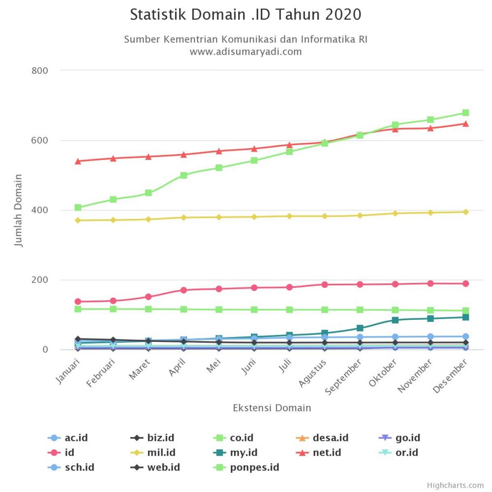 Pertumbuhan domain .id atau dot id terus bertambah setiap tahunnya, hal ini menunjukan awarness masyarakat internet Indonesia akan domain CTLD ID. Selain memang juga disebabkan karena domain TLD seperti .COM mulai habis. Data diatas menunjukan bagaimana pertumbuhan pengguna domain .id tahun 2020.