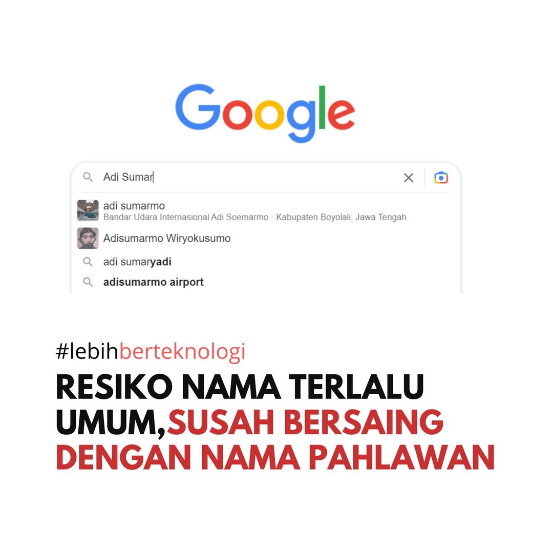 Canggih kalau saat disearch di Google dan google kasih rekomendasi, nama kita sellalu kalah dengan nama Pahlawan, nama artis dll.