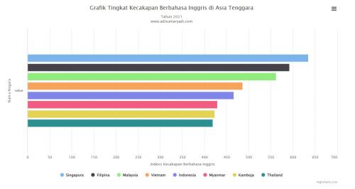 Indonesia menempati posisi kelima dari 10 negara di Asia tenggara dalam kecapatan berbahasa inggris, angka ini masih jauh dari kata