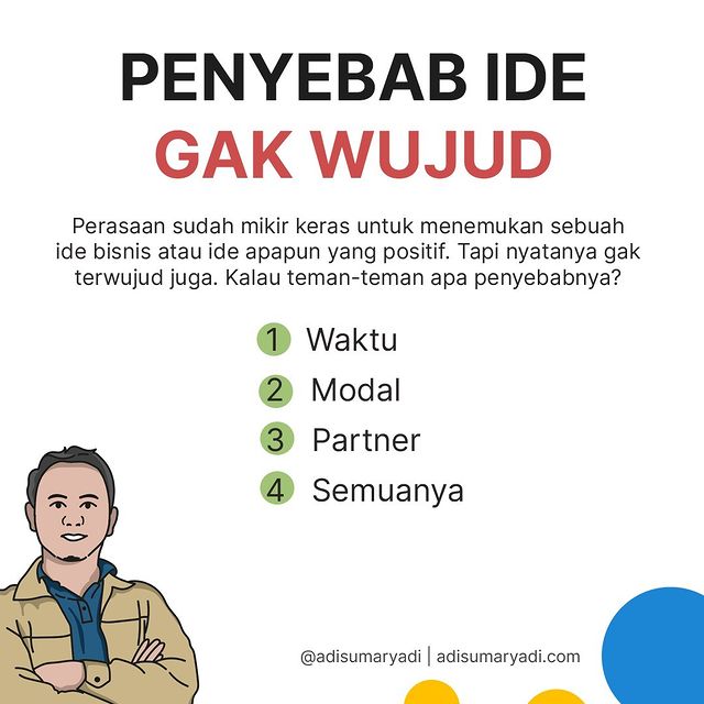 Udah mikir keras tapi gak wujud, apa penyebabnya yang teman-teman pernah alamin? . #ide #idebisnis #semangat #ideide #manajemen #marketing #digitalmarketing #umkm #umkmbisa