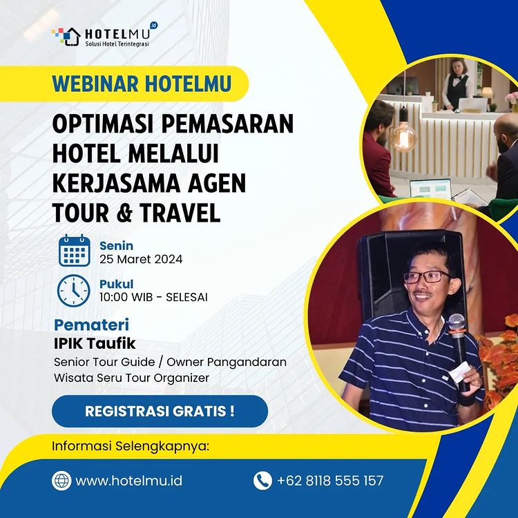 Yuuuk...Ikuti WEBINAR DAFTAR GRATIS!!! Bagaimana Mengembangkan Pemasaran Occupancy Hotel Terutama Saat Weekdays??? Dengan Siapa Saja Sebaiknya Kemitraan Dilakukan??? Salah Satunya Bekerjasama