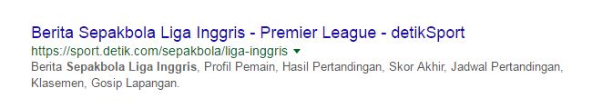 Kemudian dalam sebuah website biasanya sebelum masuk kedalam sebuah postingan detail, terlebih dahulu akan ada halaman kategori. Dihalaman ini anda tidak harus menyampaikan Tagline anda, tetapi cukup dengan menerangkan kategori apa dan disertai dengan Brand anda. Saya ambil contoh kategori berita di detik.com dan pencarian kata Berita Liga Inggris.
