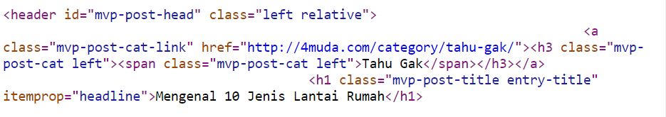 Dihalaman itu hanya ada sebuah H1 yang diisi oleh judul artikel, pun begitu dengan meta title dibagian atas. Oh iya, sempat lupa untuk menerangkan Meta Tags itu apa, Meta tag adalah sebuah tag didalam HTML yang memberikan penjelasan tentang halaman itu, seperti layaknya metadata dalam sebuah data atau foto yang menerangkan kapan foto diambil, pembukaan berapa dan menggunakan kamera apa. Begitu juga dengan meta tag akan menerangkan halaman itu halaman apa dan sebagainya.